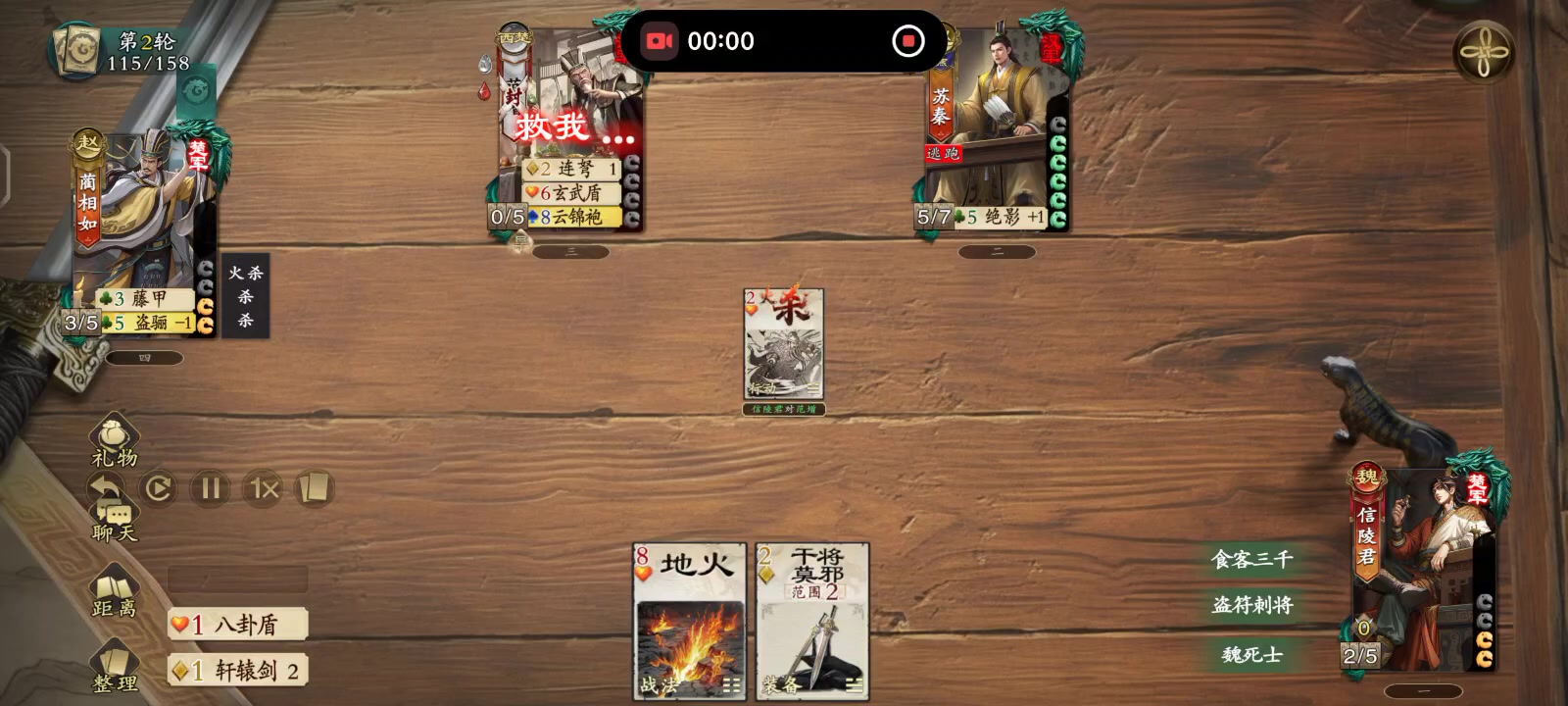 ak出完手里的杀,乌骓出杀摸一,张辽的白狼出杀摸一,霍去病造成伤害再摸一。没有等到萧何回合,不然再给他一个回合,外加举贤又是出牌摸一(ಡωಡ)#名将杀