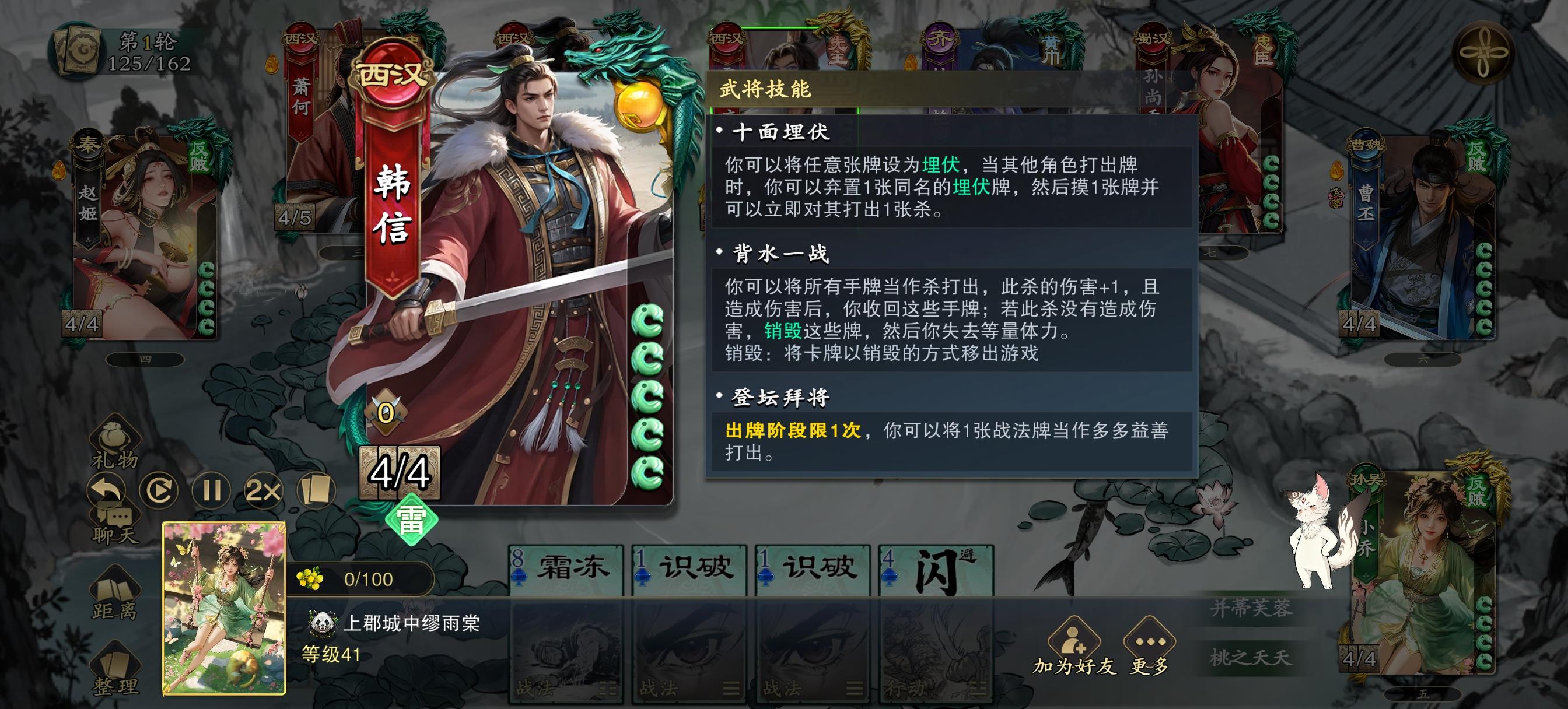 本周预计更新2个三国云起武将步练师 4手牌 4体力上限 孙吴 稀有仁惠抚下当一名其他角色受到伤害时,你可以交给其1张牌,然后令其随机获得并装备1张装备牌。宠冠后庭每个角色的回合结束时,若你的手牌数不是全场最多,你摸1张牌。追册中宫阵亡,你可以将所有手牌交给一名其他角色,然后令其随机获得并装备装备牌直到达到装备上限。太史慈 3手牌 6体力上限 孙吴 史诗猿臂善射当你选择杀的目标时