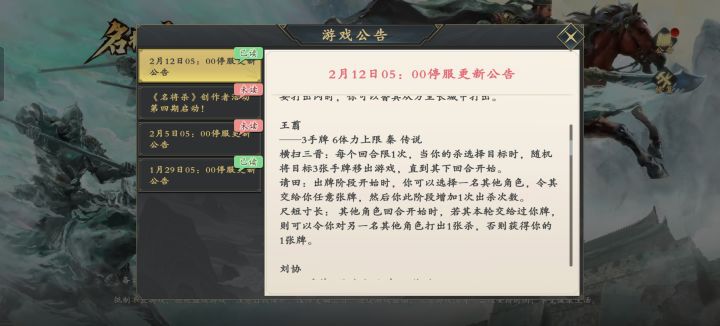 《名将杀》2月12日更新公告丨全新版本·【秦扫六合】即将上线!