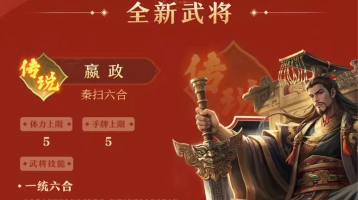 《名将杀》全新版本·【秦扫六合】即将上线!将军们好:以下为2月12日停服更新内容停服时间为上午05:00-06:00。感谢您对《名将杀》的持续支持,抱歉影响将军游戏,停服结束后我们会邮件给将军们发放补偿。【新增武将】(嬴政,王翦将在赛季更新后上线)嬴政——5手牌 5体力上限 秦 传说一统六合:与你势力相同的角色造成伤害后,你可以将受伤角色的势力改为与你相同或移除受伤角色的势力。当全