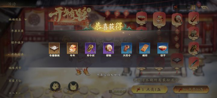 一天打六把年兽,加上任务领的才616铜钱,而手牌皮肤活着头像框每个都要6400。也就是说最少要打132把年兽,每天6把,打22天才能把最好的两个奖励换了。这合理吗?而且年兽被击退不应该给点全服奖励,给点铜钱吗?咱为了日活也不能这么干啊,太肝了。