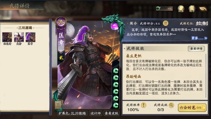 杨国忠(4/4)奸佞:出牌阶段限1次,可查看1名其他角色手牌将其中1张转化为杀并展示其所有手牌殃国:出牌阶段限1次,可给2名角色各1张牌进行阵前对决。你摸因此打出杀数量张牌国库:出牌阶段结束时将任意张牌入库并令等量名角色将1张牌入库。回合结束获得库中轮次+1张颜真卿(5/4)协守:你/1名其他角色出牌阶段限1次,与1名其他角色/你交换1张牌.每交换2次你令任意名角色摸1张颜体:你打出牌