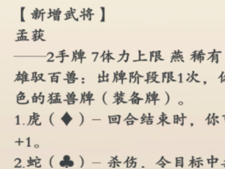 刘协 4手牌 5体力上限 东汉 传说负鼎见胁其他角色出牌阶段限1次,若其与你的距离为1,其可以交给你1张牌,然后其可以打出你的1张手牌,若此牌造成伤害,你与其摸1张牌。衣带诏限定,你可以选择一名其他角色,令所有其他角色与其的距离始终为1。当其受到伤害时,伤害来源角色摸1张牌。当其阵亡时,你获得其所有牌,并且重置此技能。刘表 4手牌 5体力上限 东汉 稀有自守待时每回合每种花色限1次,