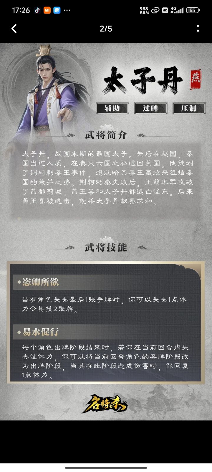 新武将爆料——太子丹 & 丹青阁上新