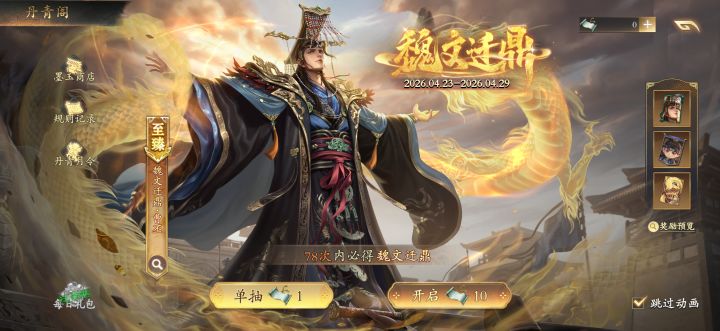 曹丕这个皮肤真是霸气十足刚打开页面我直接震惊了,曹丕这个皮肤也忒帅了点吧,双手张开真的有种君临天下的既视感,感觉很值得啊,但是我担心又是保底,能不能赐予我30抽以内可以抽出来的运气啊,我真求求了,真想要,主要是太帅了