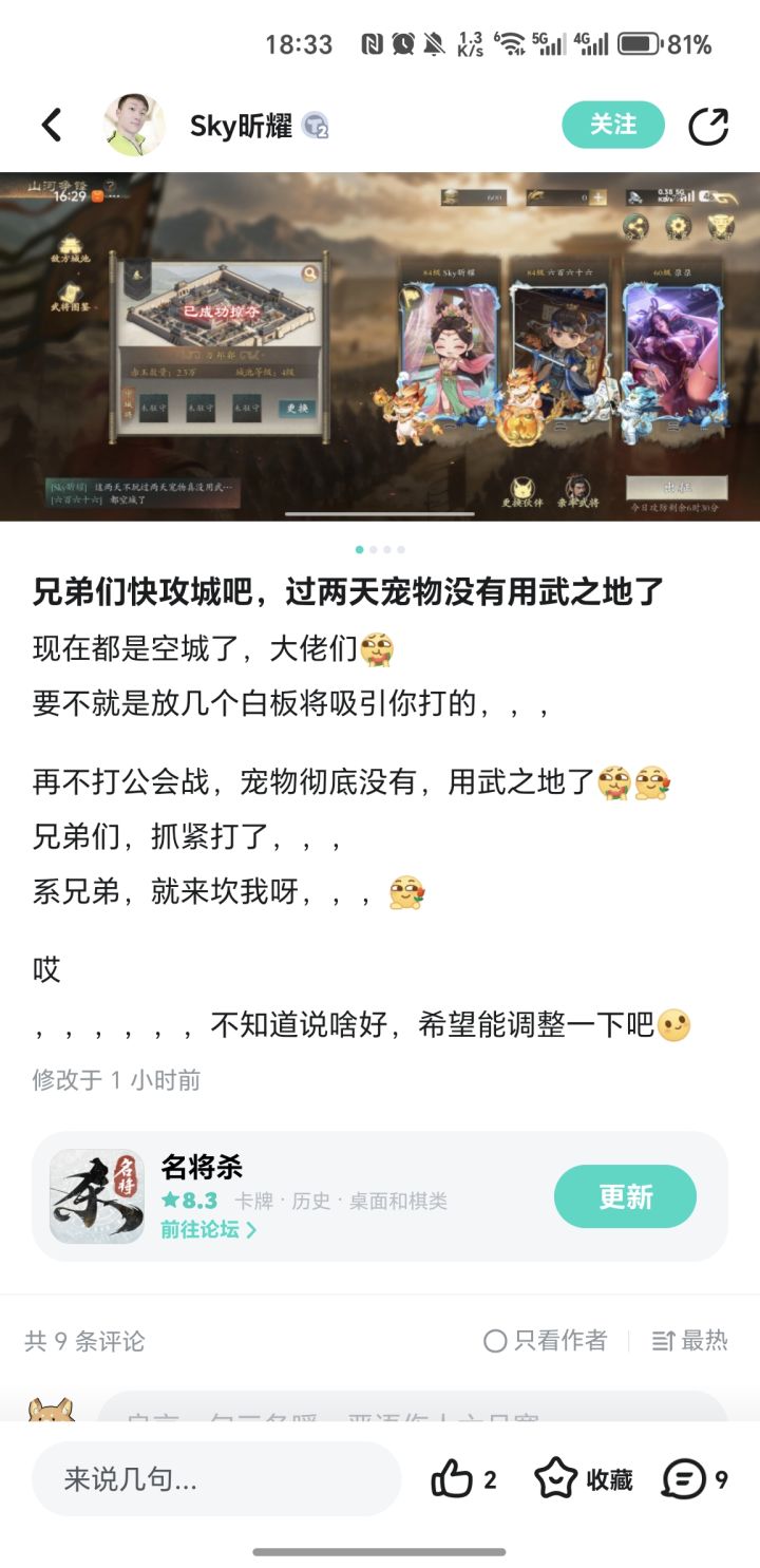 最后提两点建议:1.宠物一键升级取消了,这完全是负优化,还要一个个点礼物,更麻烦了;2.尽快做个邮件一键领取吧,不管是攻城方还是守城方都有邮件一个个点太麻烦了