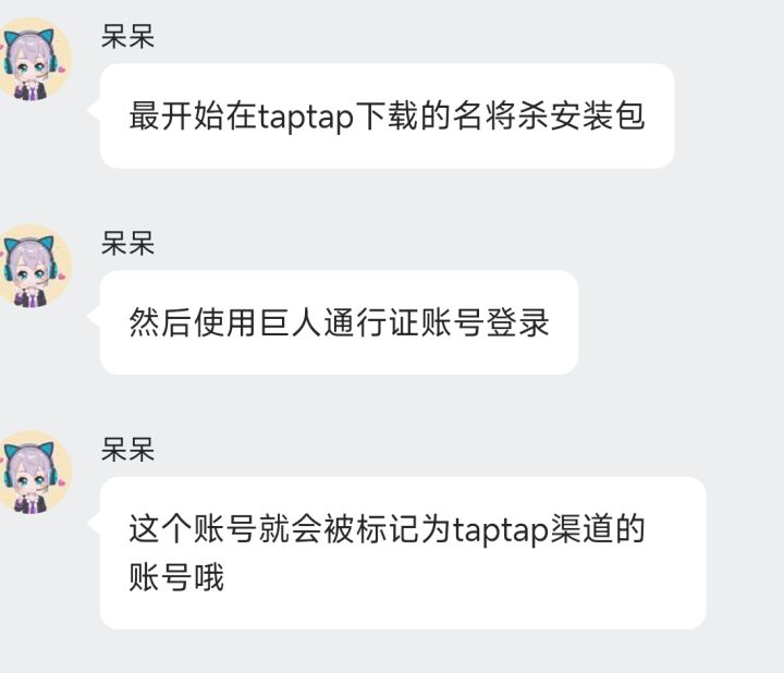 原来的号我还特地问了名将杀的客服并且电话联系沟通了说是渠道的账号,后面我想都没想直接注册了个官服的号甚至都氪了100,策划告诉我原来的号就是官服的账号。。。。我真的绷不住了
