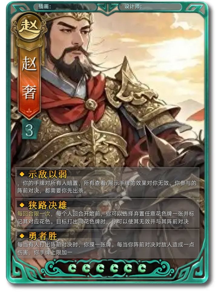 前几天有事耽搁了,最近接着发作为最先创作的角色,想了好几版,最后懒得改了,就这样吧补充:不入虎穴这个技能可以对自己造成伤害,虽然可能用处不大#名将杀 #名将杀武将 #名将杀diy
