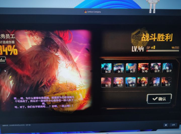 第一次打到十牢以上,遇到保卫小镇强如怪物,拼尽全力无法战胜。兔浮打出来的这个大数字不知道是怎么来的。刚开始打了几百,突然多了几千,然后就这么多了。十层牢以上是不是必须有完整的配队,包括对应体系的许多ego了?我没几个烧伤ego。