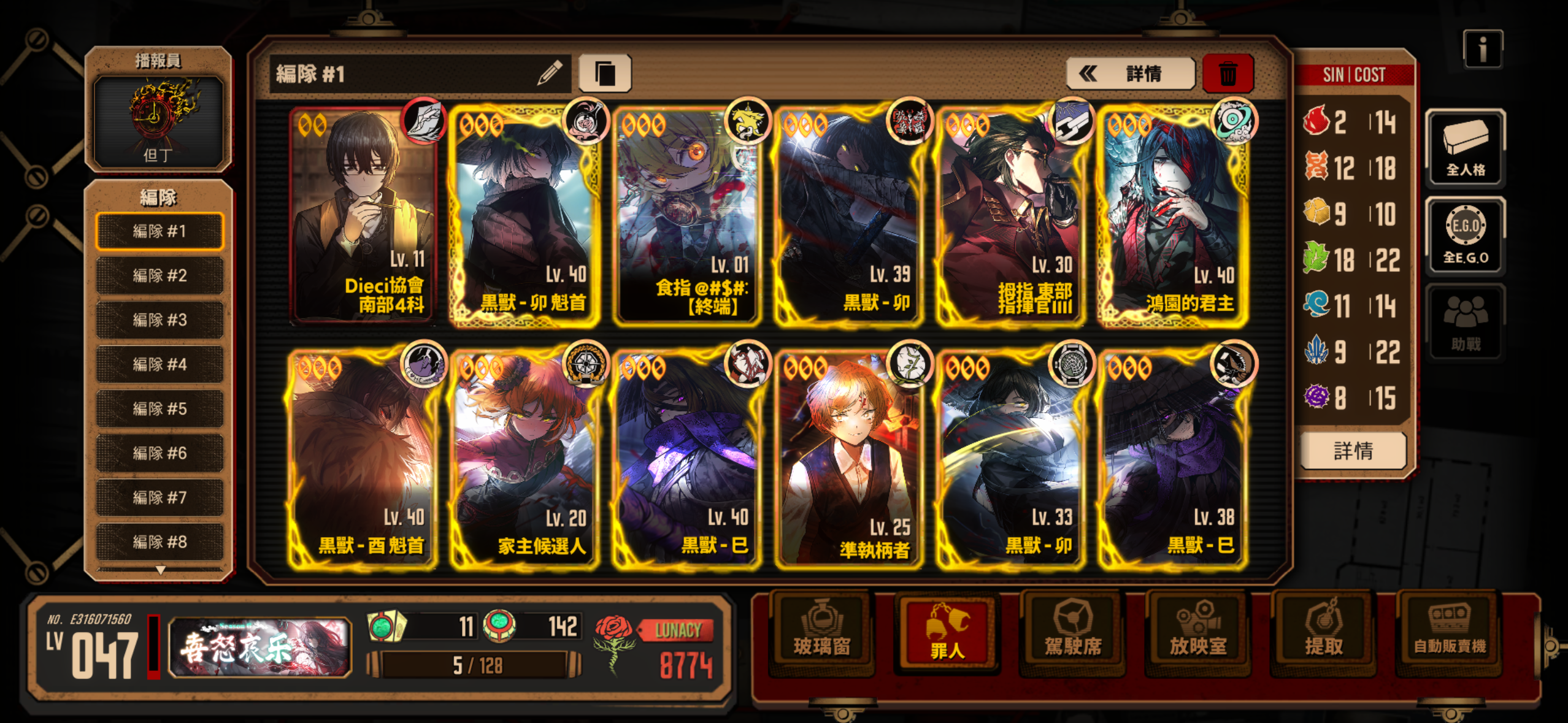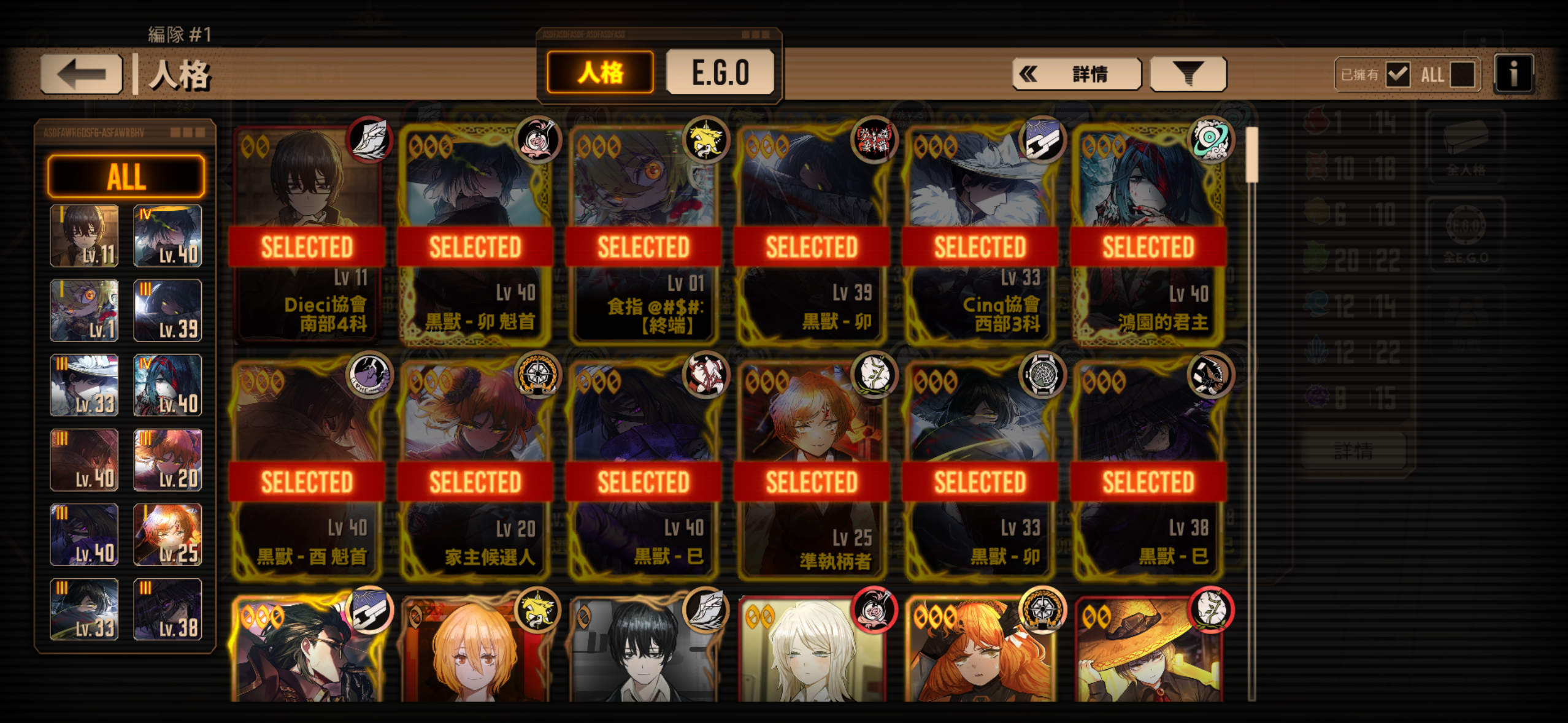 哈哈,新人入坑出了三个Ego,就一个三灯食指唐。打一个普通镜牢都难要不是有大佬助战的绝望罗推关卡,我可能都要重新开号了,学生党一个根本买不起号