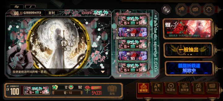 不要浪费时间刷什么初始。完全浪费时间,你不如多刷几把镜牢来的实际,现在普牢都是闭眼过,一边刷剧一边p,更没必要买什么自抽号去抽池子,不要拿国内这些手游的思维玩这游戏。非常良心的游戏。初始人格起手就能玩开局直接领完0章点进去节领上面的狂气狂气,出来20抽必出三灯抽完后,狂气就不要再碰任何卡池,20抽抽到什么用什么,开始攒狂气狂气只在瓦夜复刻抽,只抽瓦夜复刻!!其他任何时间不要用,其它池的人格都会进白