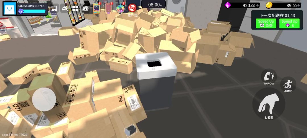 今天教大家一个快速处理纸箱的方法。首先,积累大量纸箱,将指示小白点对准垃圾桶,左手点击控制箱,右手小白点对准垃圾桶,然后点击use,配合左右左右,就可以很快速的扔掉纸箱了# #超市经理模拟器