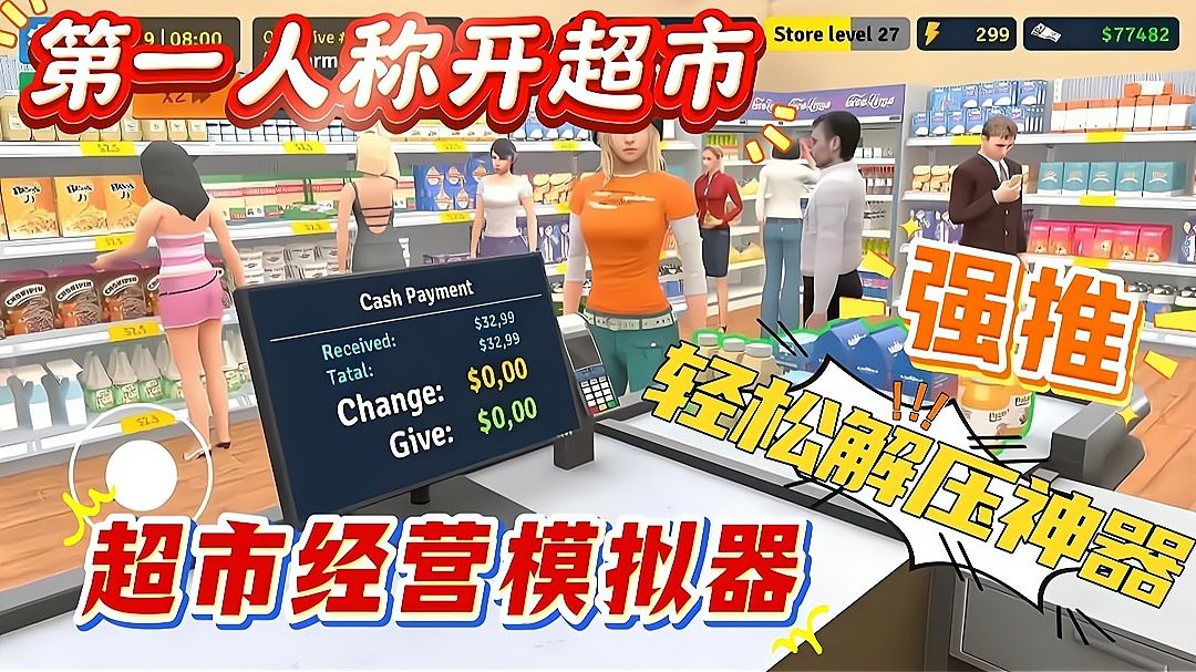 第一人称❗真实模拟开超市❗手动搬货、摆货、定价、收银、找零✔️