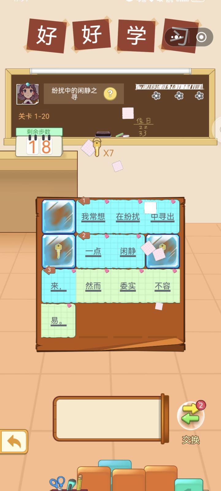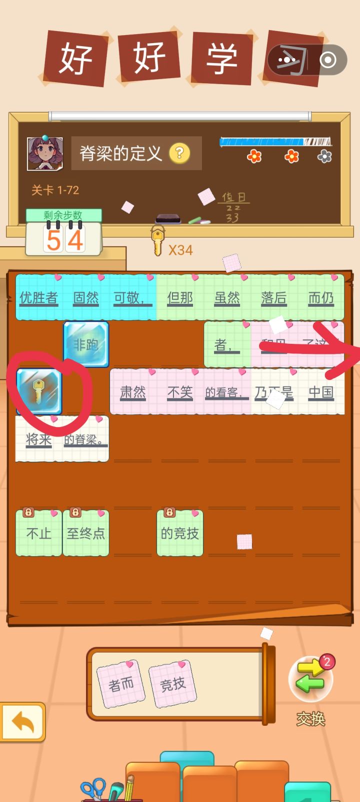 在这一关中,将“者而”填到“肃然不笑”的前面,这样,冰块后紧接着两个以上的纸条都在正确的位置,就可以把您圈出来的冰块消除了
