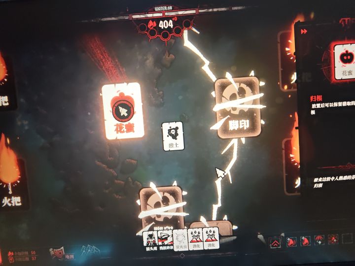 为了平衡整体的游戏难度和增强游戏性,制作组还在其中增加卡牌卡包的元素,我们能消耗血液开出不同的卡牌。可能是充满新鲜血液的生物,可以适当增加我们游玩之中的容错率,也可能是附带特殊能力的技能牌,用来减少根系蔓延的消耗,消化那些不能直接被吸收的大型生物,破除原本阻挡我们道路的树木等等,小小的卡牌让游戏变得不一样了起来。
