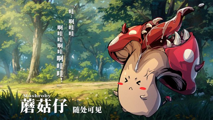 「我们都在用力的活着~」 【基础信息】学名:蘑菇仔分布区域:赫尔大陆全地形常见,尤以潮湿林地、废弃矿洞处为甚。【物种特征】✧外形:伞状躯体高度约 50-80 厘米,菌盖颜色随栖息地变异。✧种群特性:通过孢子进行无性繁殖,雨后常成百上千集群出现。✧特殊能力:遭遇威胁时,会喷射致幻孢子,让人无法分清前方的道路!✧威胁等级:★(新手练手级)✧没有食用价值 今天的报道到此结束啦
