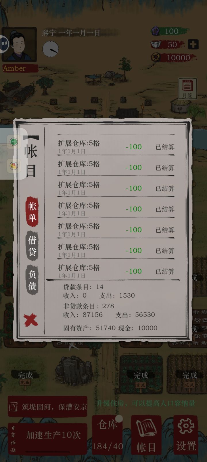 钱没了仓库格子没了声望没了住宅没了经商没了