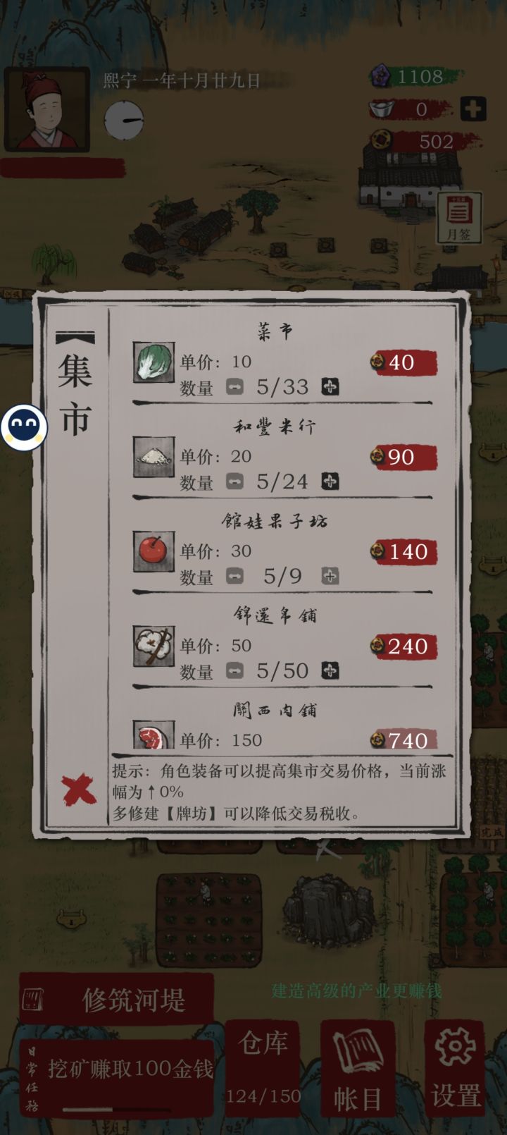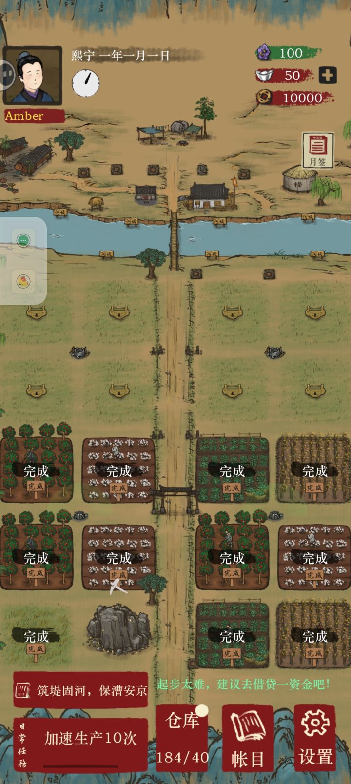 1 2000铜币的衣服实际上两万才能买2我买的30银两的衣服没有获得集市售价提升3四块田地中间一口井,然后井建设完之后只能灌溉两块田地4,声望靠种树和马车 种树都是一次性的,野猪一来就没了,马车收货比集市便宜很多 根本划不来5,经商也划不来,路费两百,22个水果价值660换7个咸鸭蛋,价值七百多,亏损6,可操作性太差,更像一个放置类游戏 但是又很多无法自动操作,150的仓库一会儿就满了还