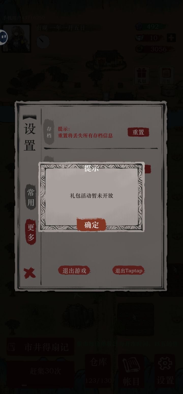 钱没了仓库格子没了声望没了住宅没了经商没了