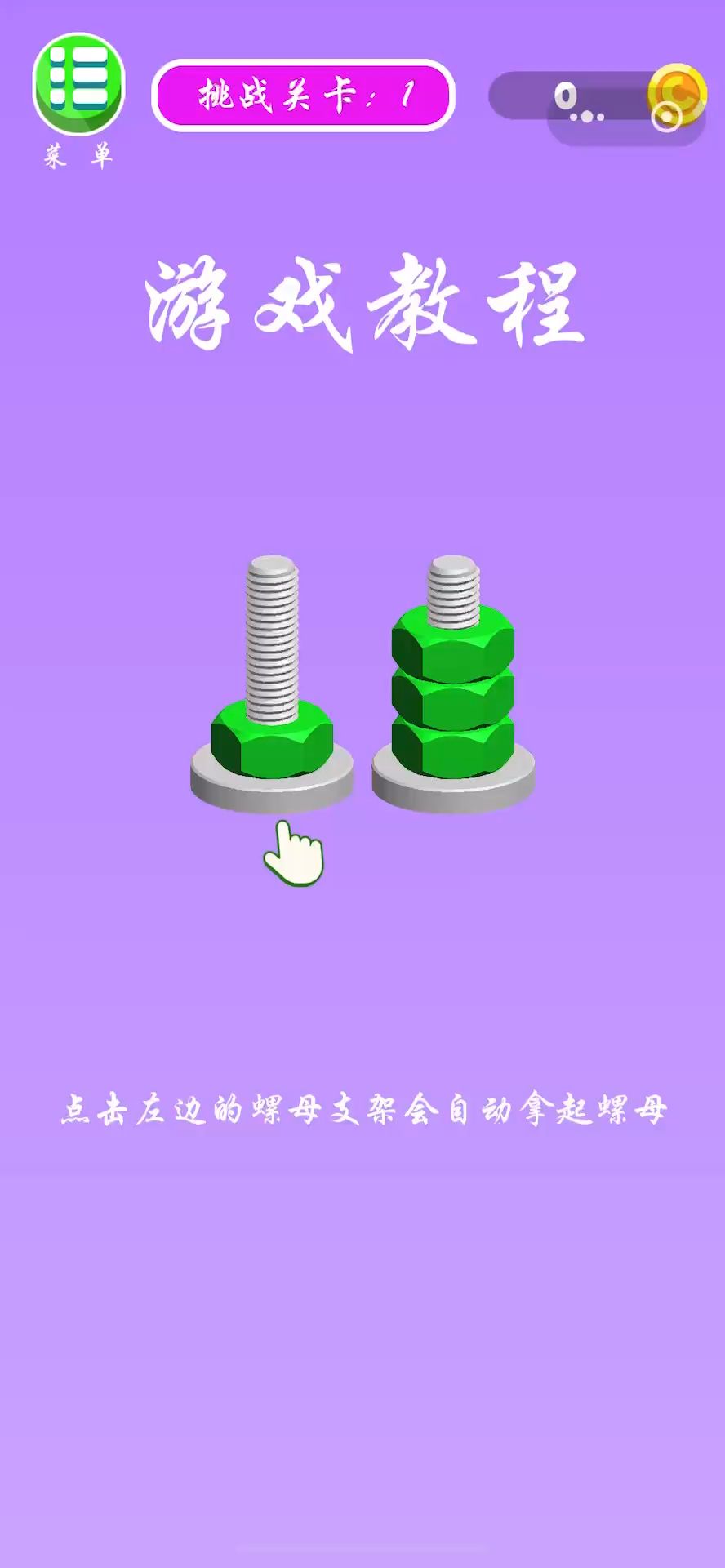 各位军师,这应该是在所有游戏中最简单的游戏教程了吧,只需要轻轻一点就OK斜眼笑[表情_斜眼笑] #螺母和螺栓颜色分类