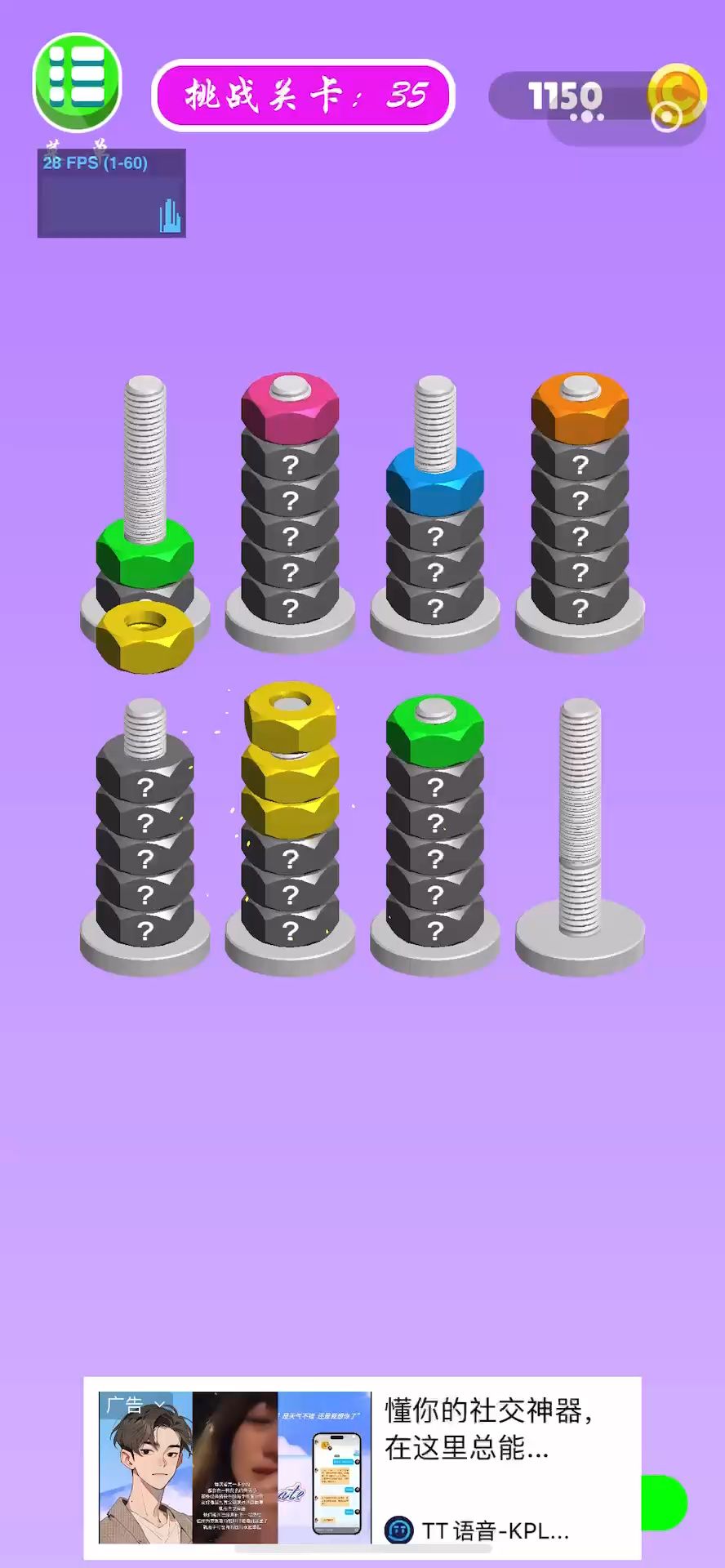 螺母和螺栓颜色分类第45关的通关攻略🤓