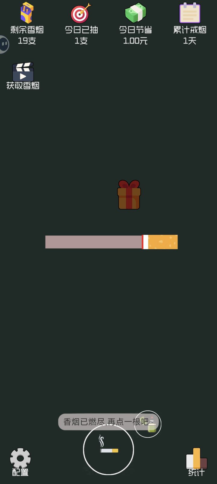 这个游戏就很莫名其妙的哈,点烟抽烟就没了,明明点到线上了还没用,搞完十九根还要求看广告,配吗😂