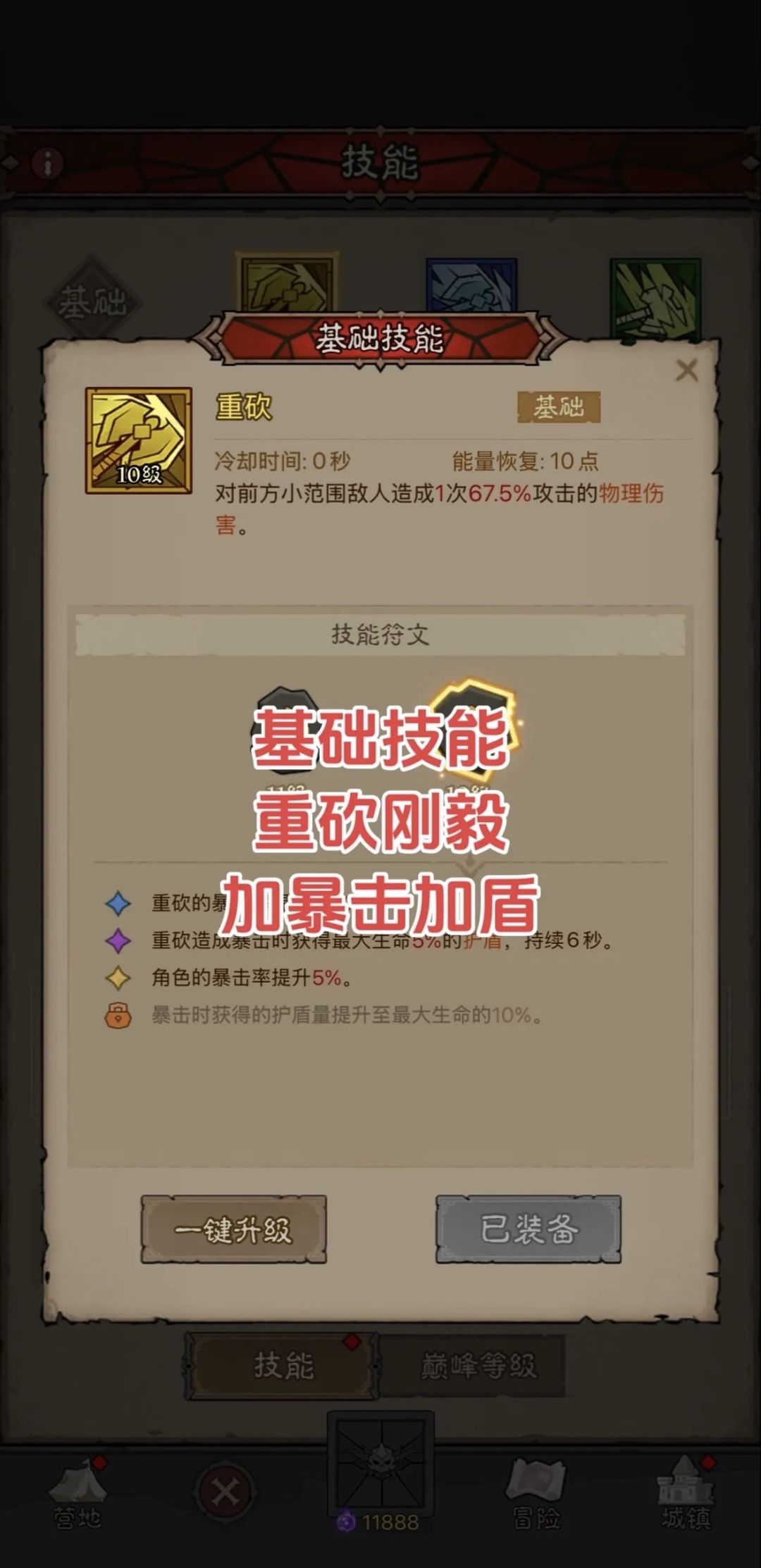 目前停在了9-3,没有灵魂石刷怪了。 8-10是440万战力过的,9-1是460万战力过的,核心技能火锤没出橙色。被动技能如下,图二是8-10用的被动,图三是9-1用的被动。这套打法有一些赌的成分,核心在于第一个技能的橙色插槽有几率回血,回血几率高就过了。希望能帮助到友友们酷[表情_酷] #英雄没有闪攻略
