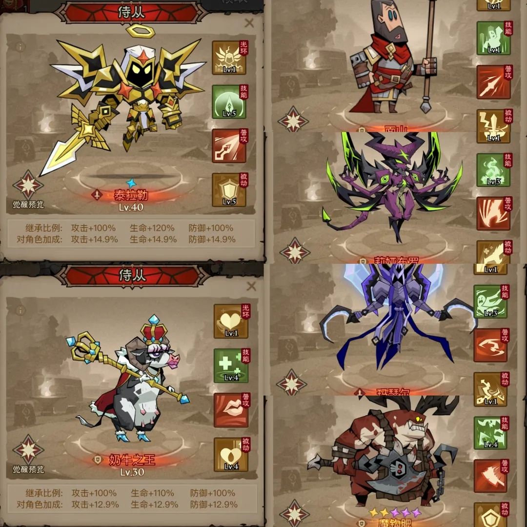 一、两种流派的相同点 侍从选择(图1) 侍从得能存活,主战侍从首选泰拉勒,次选奶牛。协战侍从从魔勾肥、面山、莉娅布罗、玛瑟尔里挑俩,用于增伤或减伤。 暗能武器及套装 武器首选部族的敬重,次选修罗锋芒、元祖。(图2) 套装选永恒主宰四件套,优先腰带、裤子、衣服、鞋子这四个位置,因其传奇暗能作用相对较小。(图3) 属性加点(图4) 除了荆棘全点满,上面三个缺哪个点哪个,挑一个点 被动选择(图5) 在这