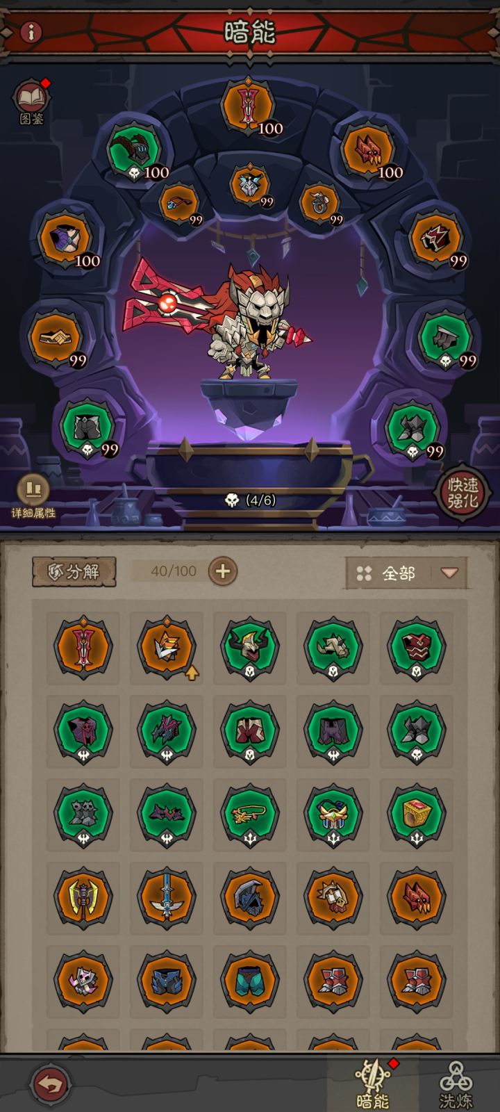 先说缺点了,1.抽侍从平民没有保底出红真的挺难的,有时刷几千红晶也刷不到一个,我一般是刷到啥直接买,不管啥品质,都加战力。2.暗能爆率真是太低了,玩了这么久了也没打出完整的一套6件,目前锤子4件套。技能符文也不好抽,目前就出了一个火锤。3.活动玩法没啥心意,娱乐性不太好,希望活动越来越好。优点总结一下子就是吃相还凑合,平民肯花点时间基本也啥都能得到。我没花钱也不敢奢求太多,上班摸个鱼解个闷