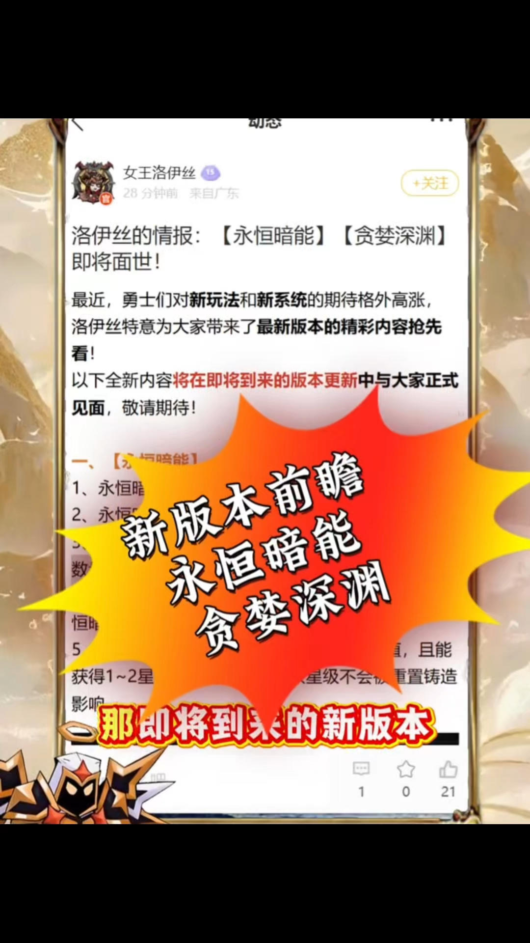 新版本前瞻「永恒暗能-贪婪深渊」!