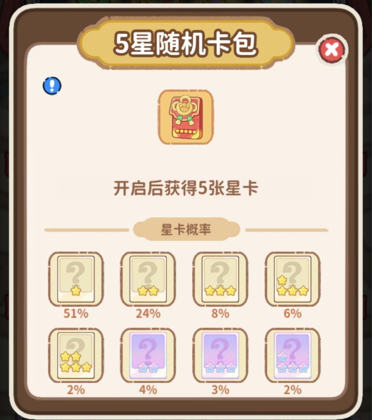 1. 限时订单的5星卡包和碎片兑换的5星卡包概率不一样吗?限时订单的5星卡包有概率出5星彩,而碎片兑换的没概率出5星彩是吗?2. 这次5周年的生辰礼包里面的5星卡是哪种5星卡,是有5星彩概率的还是没概率的?