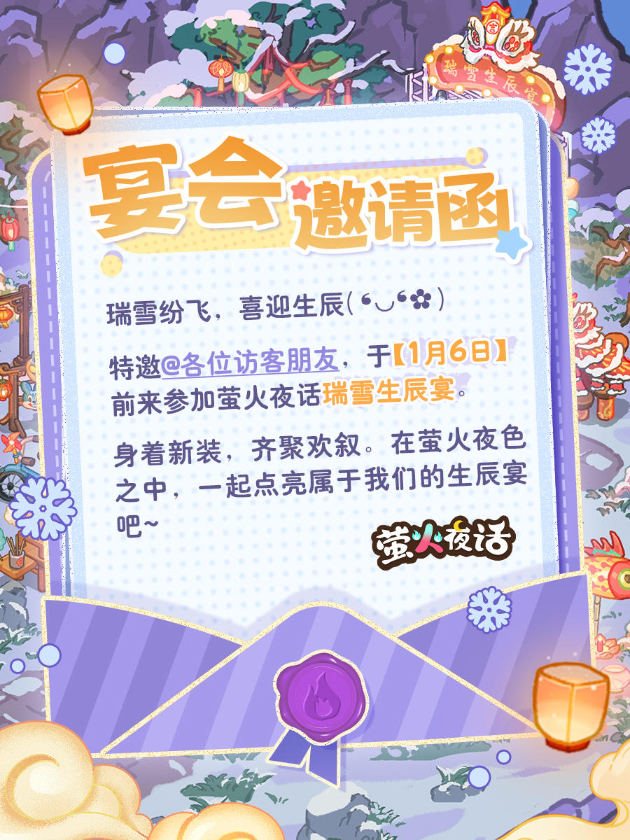 “喂?诶!访客朋友你好呀,这里有一封寄给您的瑞雪生辰宴邀请函,请您签收哦~”朋友们盛装出席,只为期待您的赴宴~1月6号我们不见不散哦ヾ(●゜▽゜●)♡ #萤火夜话 #纸嫁衣平行世界 #纸嫁衣