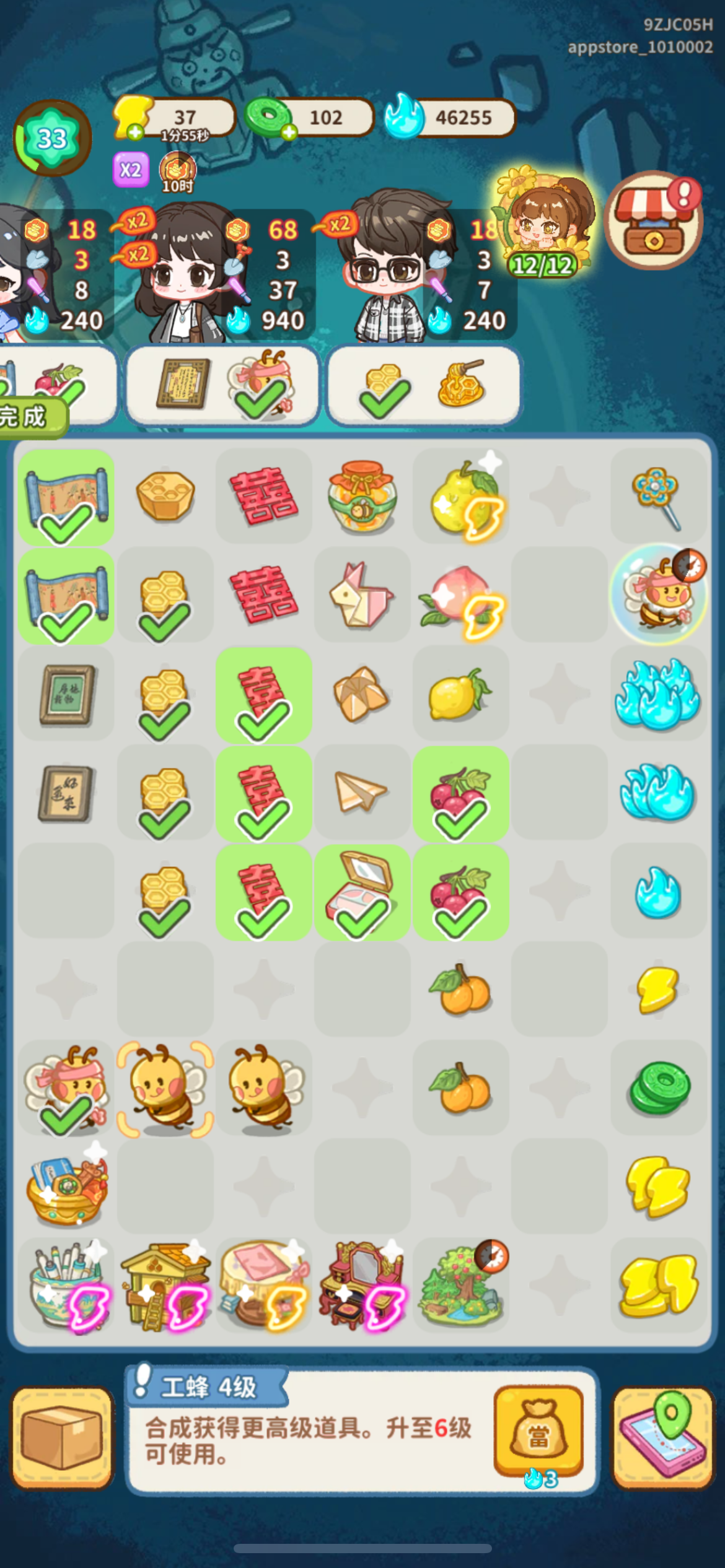 虽然消除一个一个耗体力很恶心……但是鉴于这个游戏的蓝火就是卡关的关键的条件下,花费500蓝火跳过消除还是太奢侈了。获得蓝火的优先条件还是通过订单,在不触发暴击的极端条件下,9级的物品给580蓝火要512体力。580/512=1.132813。(1蓝火=1.13体)然后是这个消除,最理想的条件就是3个体力获得5个蓝火。5/3=1.666667。(1蓝火=1.67体)更不用说订单的会暴击所以基本