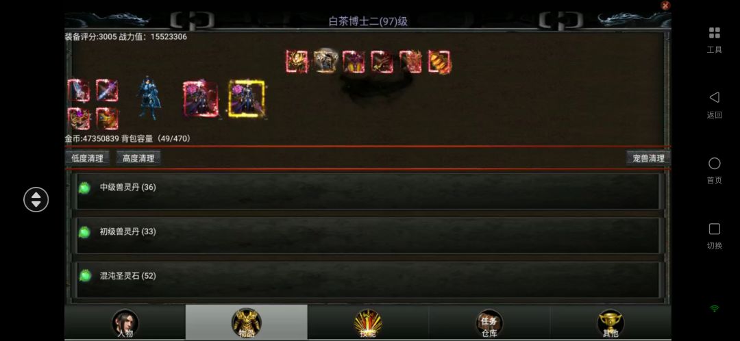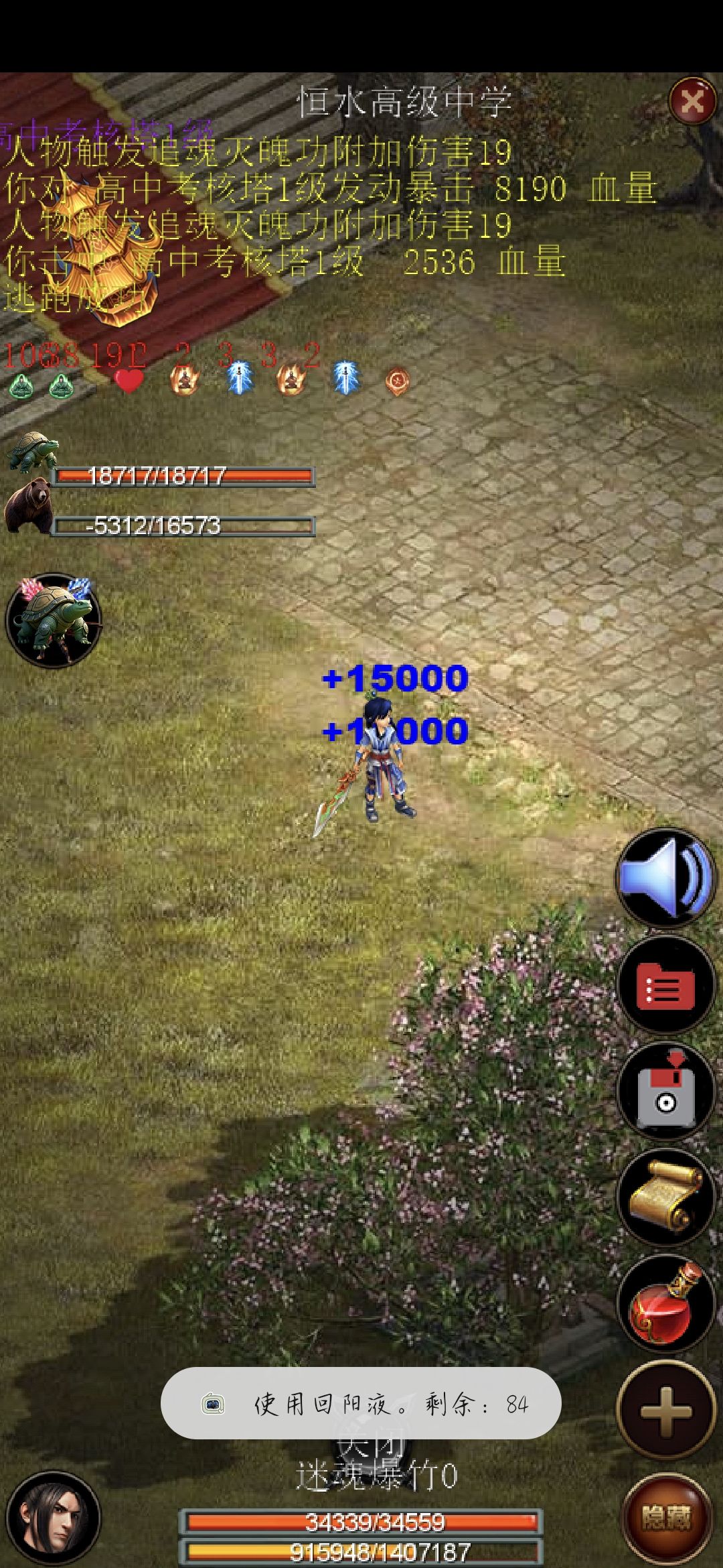 前面开局有很多攻略了就不多说了。 这里说一下高中后期的注意事项级攻略,高中这里需要注意,因为67升68需要沉淀一段时间,建议用15+1阶武器,14+2的戒指,防具不用强化,宠物需要凤凰加三,基本都能过了,注意刷凤凰一定要买两种符:圣兽召唤木符和圣兽天赋生命符 这样基本找到的全血的概率很大,因为过度宠物建议1050左右就行,基本过塔没问题。到了大学,先刷塔,刷驼树圣龟和驼树火龟(能刷就是刷,因为按基
