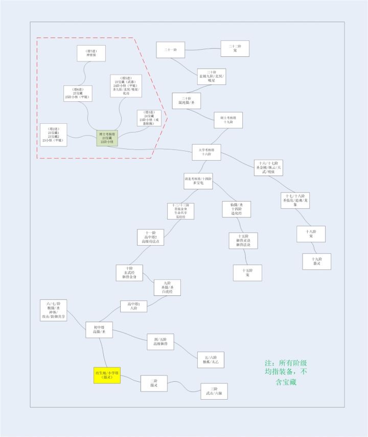 前面开局有很多攻略了就不多说了。这里说一下高中后期的注意事项级攻略,高中这里需要注意,因为67升68需要沉淀一段时间,建议用15+1阶武器,14+2的戒指,防具不用强化,宠物需要凤凰加三,基本都能过了,注意刷凤凰一定要买两种符:圣兽召唤木符和圣兽天赋生命符 这样基本找到的全血的概率很大,因为过度宠物建议1050左右就行,基本过塔没问题。到了大学,先刷塔,刷驼树圣龟和驼树火龟(能刷就是刷,因为按基