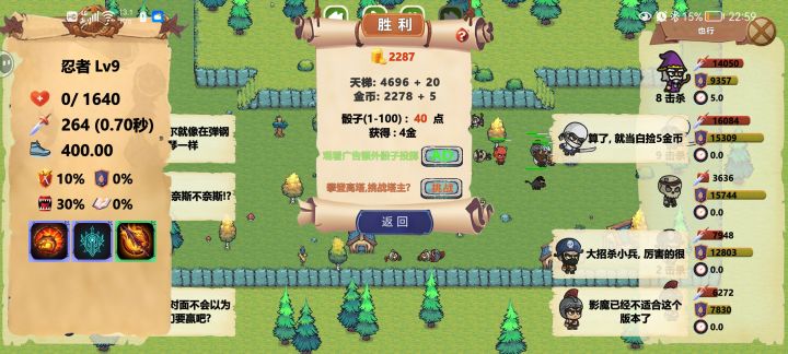 第三轮,对方忍者竟然直接掏出了双嗜血+闪烁热舞,开啥玩笑~~不过我控多,最后还是我赢了