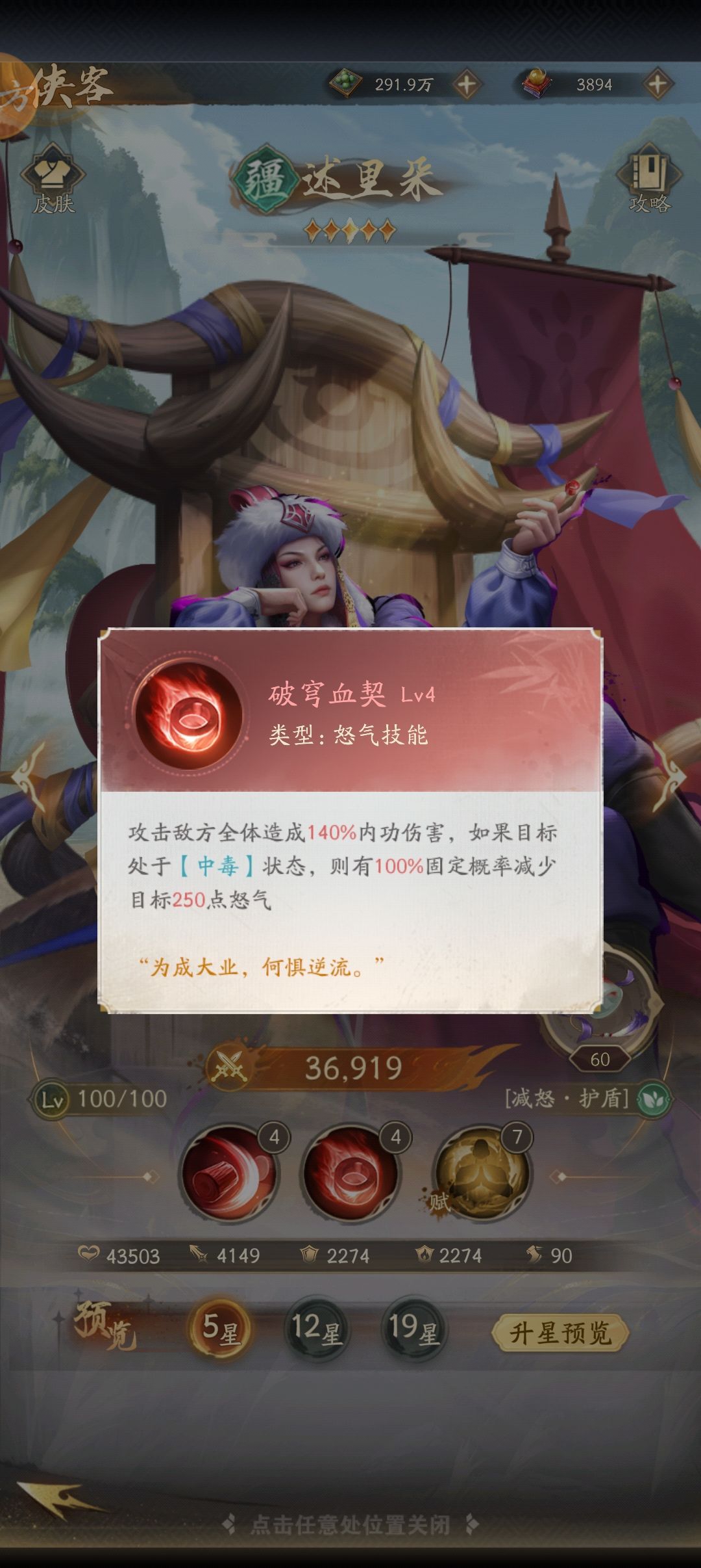 作为目前版本T0主C,细节拉满的天暗星伤害到底有多恐怖! 【玉佩推荐】拿淬炼加一的红色玉佩来说,基础属性推荐拿身法,会伤加成,会心几率,初始怒气,攻击加成。玉佩技能推荐拿敏捷,武力,会伤,英勇。(玉佩技能不能与锦囊技能重复,只会生效品质更高的技能!) 【蛊石推荐】蛊石从前期就要确定好,这里直接拿五星蛊石来说,推荐阴-双攻蛊石,阴-1攻1防蛊石,阴-1怒气1气血蛊石或者阴-双怒气蛊石。前两者分别