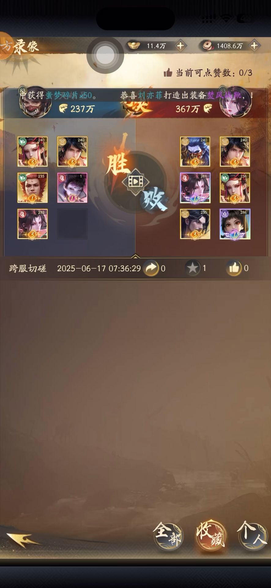 越战对面双登峰,阿姐伤害很高,群伤挂buff多动 ,这张卡抽的多建议养起来,挺厉害的一张冷门卡;旺仔建议养个粉1,很多时候有奇效,后面还可以当狗粮吃掉;鬼王这张卡简直便宜又好用,全体回怒加纵排减怒,人称充电宝[表情_开心]。卡牌游戏阵容千变万化,大家都可以根据自己的卡池搭配,所以不建议吃绝➕卡,因为很多卡都有意想不到的效果哦。最后有需要调阵容,新手起号,活动建议等也可以联系,感谢大家的支持。 #不