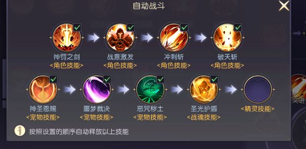 首先我们要知道技能自动释放的顺序是从第一排的第一个到第一排最后一个,然后转头释放第二排第一个技能到最后一个。有些被动打架的活动,比如矿车和祈福,都是别人来打设置好了的自己,那么这些时候就比较考量我们的技能摆放顺序是否合理。所以这个无敌的位置是至关重要的,很多时候两个角色还没接触到,自己就把无敌给放了,我一般把无敌放到第二排靠后一点的位置,先放减益技能,等两个角色接触以后就开始放两个主动技能,然后