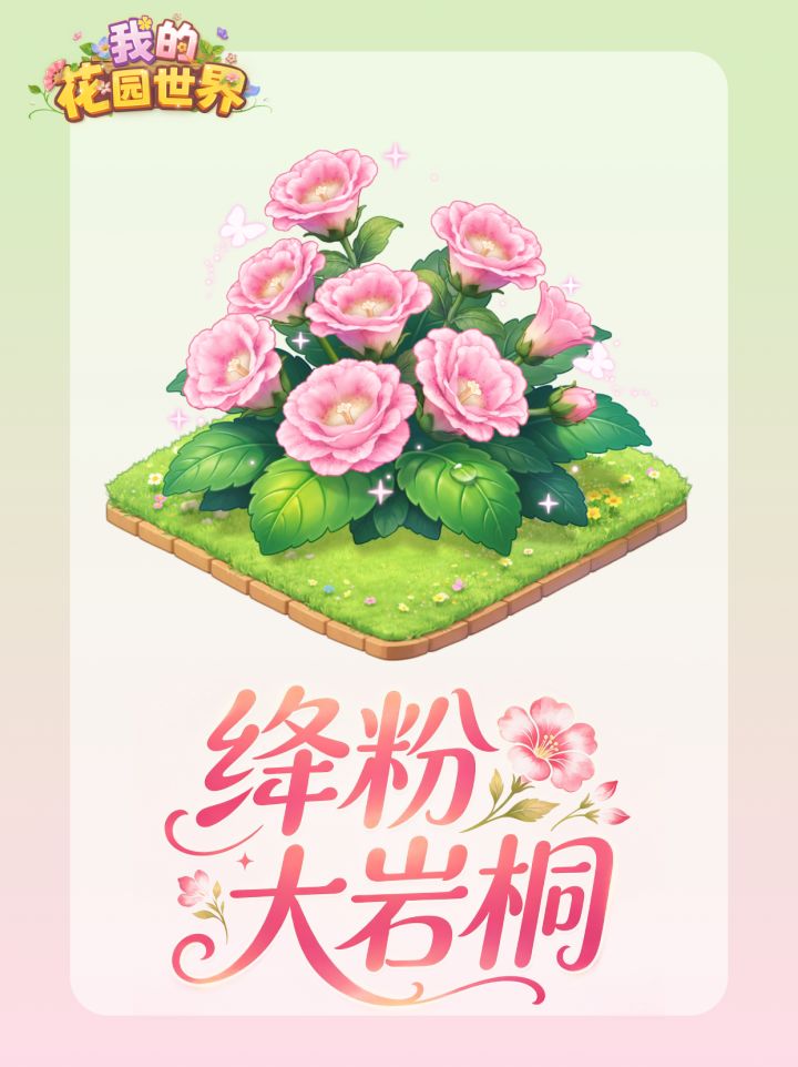 亲爱的花艺师们~🌸一抹暖粉,将春意轻轻铺开。「绛粉大岩桐」即将于明日入园✨🎁🎁🎁有奖互动🎁🎁🎁💐新花入驻花园啦!点赞收藏本帖 + 评论区晒出你的新花种植截图/摸花截图,揪 1 位花艺师送【兑换码】*1✨以上是我的花园世界官方带来的最新内容!想体验模拟经营、种花养成的治愈玩法,快来打造你的梦幻花园,种虚拟繁花、收获真实鲜花吧!去各大平台锁定我们官方账号,还能及时获取游戏资讯、活动与福利,