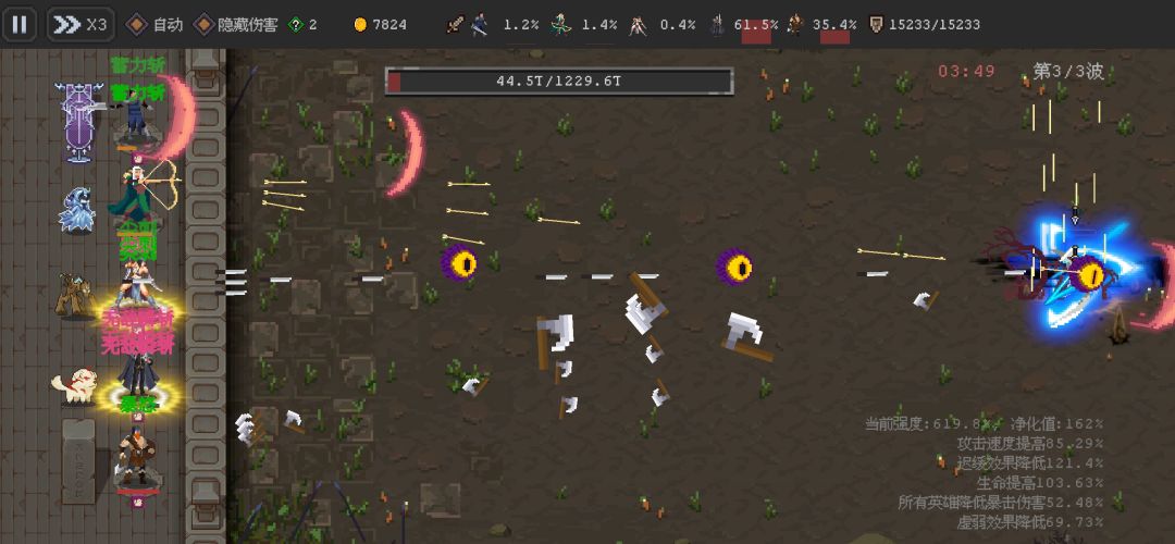 打到3000只是我时间不够挂机,时间够可以挂到4000。 一,队伍构成 一个队伍一个主C和4个辅助,氪金用维京主C.零氪用火法(为什么不用其他的英雄当主C,相信我前辈玩家已经实验无数,除了这俩其他的都输出拉垮,越到后期越明显)。 4个辅助: 骑士的普攻和大招能给怪物套增伤,纯辅助角色。 森林游侠能给队伍加攻速是整个队伍的攻速发动机,后期3转还可以回血,纯辅助角色。 冰法,普攻和技能,大