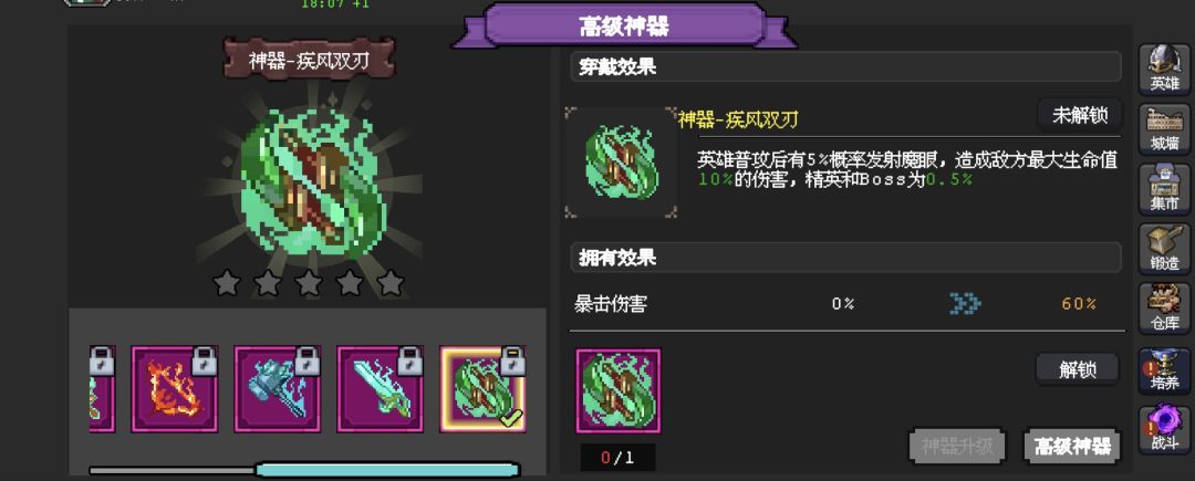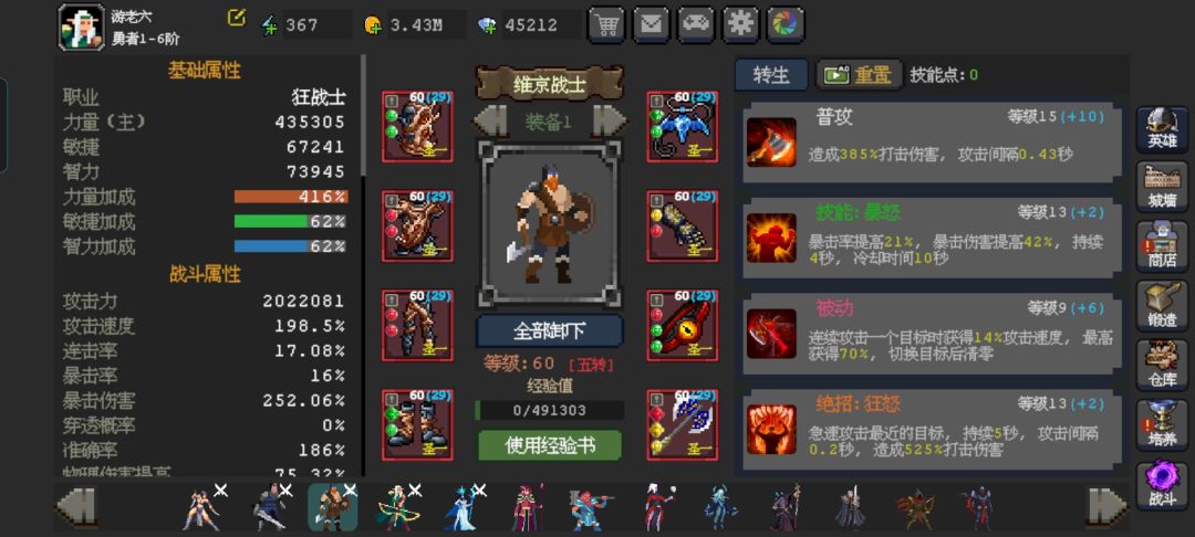 前言: 初来乍到,小伙伴们请多多关照一下,我叫孟川,这款游戏我也是无意间接触到的,前面玩起来会很无力,但是玩到后面真的很上头,所以我把这七天的攻略心得分享给大家。 教你如何过六十关的攻略心得: 第一步我们要先确定好阵容,游戏内一共有13个角色,其中有2个是氪金才能拿到(对于我这零氪党是不放在眼里的哈,虽然强度高。) 1.初始角色森林游侠可以直接上阵的。 (等于辅助,会为友军+攻击速度和穿透。) 2