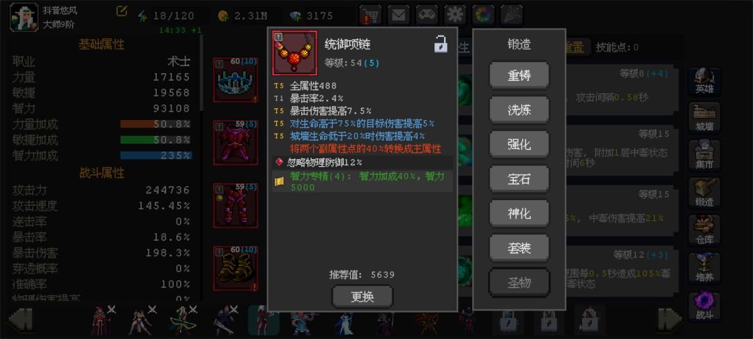 英雄配置公式如图,思路就是一输出配四个功能型英雄,零氪小氪可以用火法,充500解锁的维京是最强输出。 六十关之前随便玩,尽快升到六十,商店勤刷新,有红装需要的就买,不需要的也看看神化词条有没有,没有就买了解锁一下,装备神化没有神化石每天可以看广告免费神化一次。 无尽深渊尽量推到打不动,可以增加六七级词条刷新几率,影响商店刷新的装备,六七级词条是重置不出来的并且六七级词条不会被重置。 宝石商店里刷出