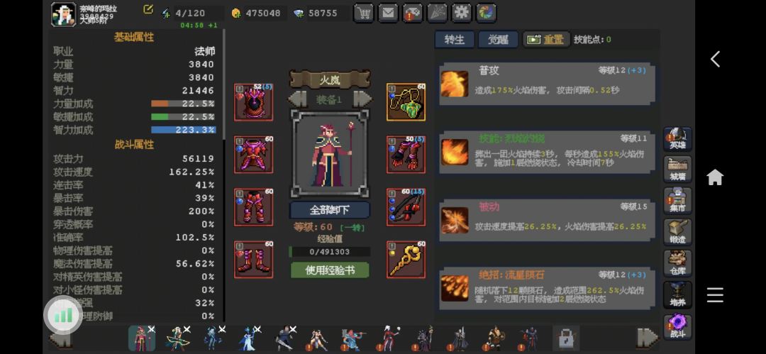 照抄的大众攻略4天过了60,有点小氪,总体来说火岚+4辅助(弓箭,幻刺,冰风,骑士)是新人最友好阵容,不用去追求其他的,可以玩熟了后再去体验其他英雄,新英雄的养成非常快,前期就用基础阵容通60就可以了。 因为我是抄的论坛的大众攻略,大家可以直接去抄(下方有传送门),补充点就是火岚的戒指神化击杀1%增伤20秒比神化40魔抗忽视更容易通关,玩3秒普攻流头可以神化禁魔+伤,衣服可以神化满怒加伤,很猛,