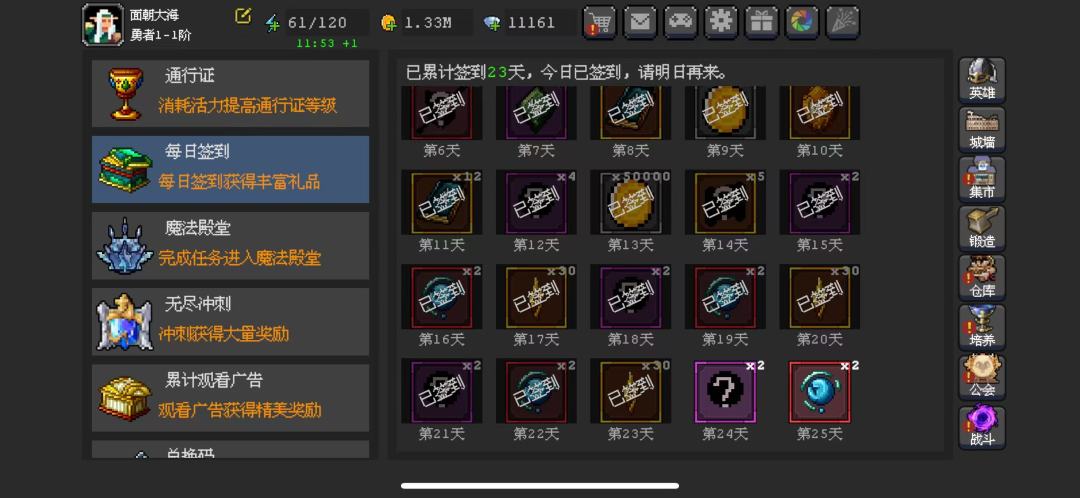 麻烦各位大大填我的邀请码5101811 一:看广告有奖励进游戏先看广告25次把血刺拿了多一个英雄好推图很多。 二:打到打不过的时候就刷装备,主要还有商店,比如你打了14层商店就会卖15层的装备,打到十五层商店就会卖16层的装备,装备在5、6、10、11这种层数数值会提升很大,卡图了就刷商店的装备来提升。 三:图里有时候会刷小精灵会掉宝石和套装图纸,小精灵一会打不死就会消失,所以刷经验别