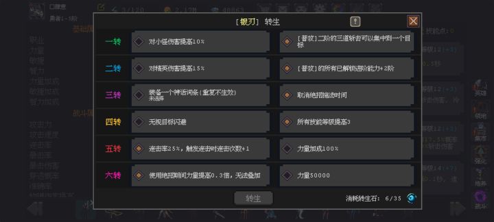 你这应该直接氪的6转,装备配置都没调,这种情况下的话6转选5万力量大提升,辅助用骑士+游侠+幻刺+冰风,另外银刃需要专属觉醒,起码有个紫专玩的才舒服点,金专就很舒服了,不禁大
