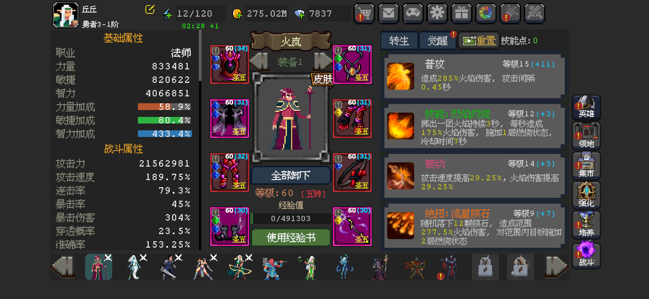 本帖仅个人游戏记录,游戏理解并非顶级,发表一下微氪维京成长历程,。因为只能维京银刃二选一,我也想知道60天500元银刃能到什么程度。首先,我是二转火法跳车的,开始打算不充钱的,发现玩的难受,就跳车维京了。我大概是在第三十天,无尽1000多的时候换的维京。因为维京三转前,没满状态火法强,氪完后还攒了一段时间转生石。到维京4转正式换主c。关于维京阵容配置其他加伤害的各项数据宠物神器,旗帜