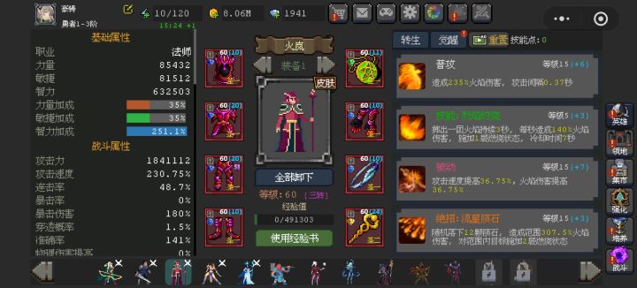 连击不能继承3M的伤害,穿透吃3M伤害,觉醒符文使用普攻符文,6转连爆普攻可以提高对单体的输出,没有穿透对堆叠在一起的怪无能为力。前期幻刺不能无限大招,神鹰穿暴击装备,优先蓝条T7洗练3M普攻,输出90%以上都是靠3M,幻刺能无限大招,神鹰使用鎏金套,衣服是裁决,武器射日弓,通过装备提供的高额敏捷加成,扩大3M的输出。