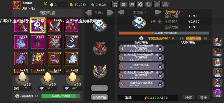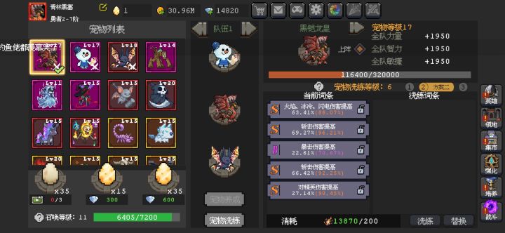 请教一下,目前是龙和雪人,蝙蝠。请问最终哪三个宠物组合最好。