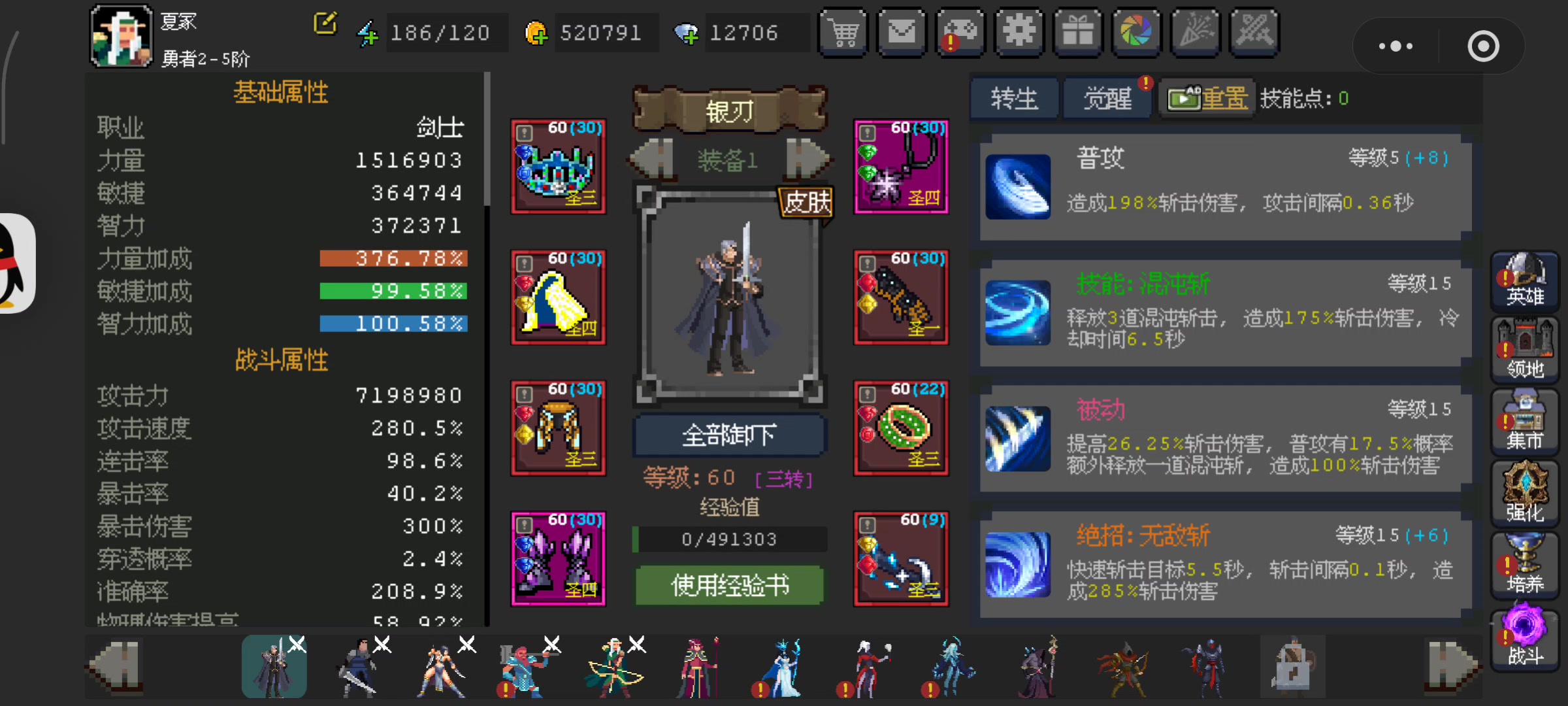 玩了有快半年时间了这游戏。从刚开始的零氪-免广告1转火岚。在无尽500时转维京,到现在。转生石除了充1000送的。就开始屯着。3转银刃3转游侠辅助维京过血缘。零氪也是能6转。只是要费时间而已。想快只能氪。熬不了游戏时间的,早点卸载吧!